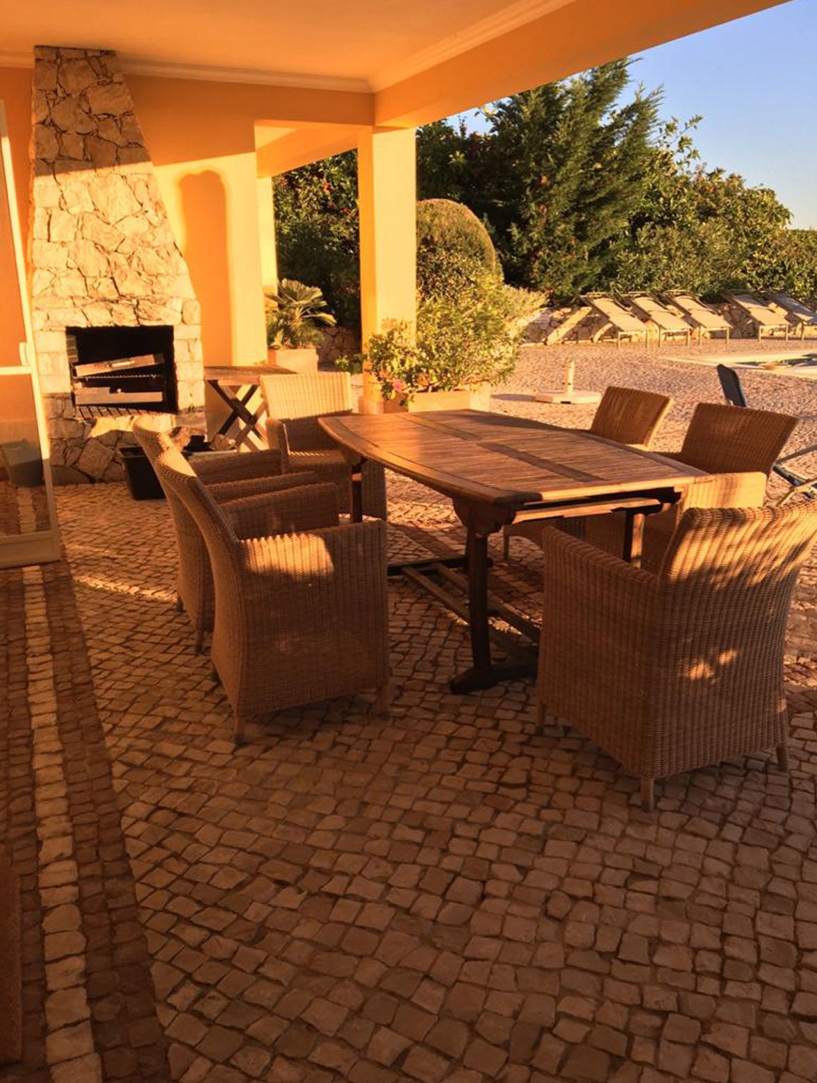 Zum Entspannen und Verweilen verfügt es über eine ca. 30 m2 große sonnengeschützte Terrasse mit einem Außenkamin. Die am Haus befindlichen weiteren Terrassenflächen sind groß dimensioniert.